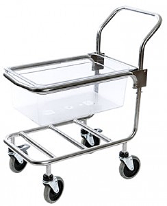 Гастрономическая тележка, нержавеющая сталь, рукоятка, блокируемые колеса, регулируемая по высоте, в комплект входит гастрономический контейнер 1/1-200 (поликарбонат).