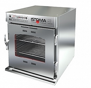 Печь низкотемпературного приготовления с функцией копчения, объём камеры 190л. Печь предназначена для деликатного приготовления и хранения продуктов. Печь позволяет осуществлять ароматизацию блюд как в режиме горячего так и режиме холодного копчения натуральной щепой. Максимальная загрузка - 45кг. Система нагрева 3D Surround Heat обеспечивает равномерное распределение тепла и поддерживает в камере одинаковую температуру вокруг продукта без принудительной конвекции воздушного потока. Равномерное распределение тепла обеспечивается благодаря нагревательным элементам, которые располагаются по периметру камеры. Такой метод низкотемпературного приготовления сохраняет естественную влажность продукта и при этом исключает использование иссушающих вентиляторов для распределения тепла и применение пароувлажнения. Печь имеет электронное управление с цифровым дисплеем и датчик-щуп. Режимы приготовления, хранения или копчения программируются с помощью 8 кнопок меню и сохраняются в памяти. Сохраняются следующие параметры: температура приготовления до 140С и хранения до 95С; время приготовления до 24 часов, время копчения до 1,5 часов, температура щупа до 95С. При достижении установленных параметров печь автоматически переходит из режима приготовления в режим хранения. Во время приготовления с использованием датчика-щупа печь автоматически перейдет в режим хранения при достижении заданной температуры внутри продукта. Дверца со стеклом имеет специальные отверстия в верхней и нижней части для циркуляции воздуха, которые рекомендуется держать открытыми во время приготовления при максимальной загрузке. В камере установлено 10 пар направляющих под гастроемкость GN2/1 с шагом 40мм (гастроемкости в комплект не входят). Внутренний размер камеры 560х660х520мм. При копчении данные отверстия рекомендуется закрывать, для этого предусмотрен специальных механизм. В комплект печи входят две полки-решетки, поддон, съемный жиросборник, контейнер для щепы и 4 колеса. Высота печи с колесами - 830м. ПРИЧИНА УЦЕНКИ: мелкие царапины, потертости, незначительные вмятины на корпусе, во внутренней камере и на вентиляторах следы эксплуатации, без колес.