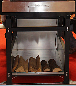 Коробка из нержавеющей стали для дров крепится к ножкам подставки