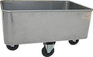 Выполнена из сплошного листа нержавеющей стали высокого качества и окантовкой в виде трубки для удобства эксплуатации. Тележка установлена на 4 колеса, диаметром 200 мм. Объем 500л