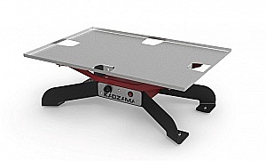 На поверхность вибростола помещается противень 600 х 400, что позволяет проводить операцию на вибростоле с полностью заполненным противнем без дополнительных перекладываний форм или баночек — вы просто поднимаете противень с вибростола и перемещаете его со всеми продуктами на нем.