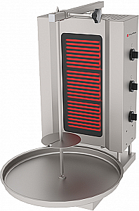 Гриль для шаурмы электрический TATRA TDM E 3T применяется на профессиональных кухнях, в ресторанах, столовых, буфетах и точках фаст-фуда для приготовления мясной начинки для шаурмы. Производит обжарку мяса (курицы, свинины, говядины), сформированного в специальные заготовки цилиндрической формы и размещенного на вертикальный вертел. Равномерное приготовление мяса происходит благодаря вращению заготовки вокруг своей оси около нагревательных элементов.