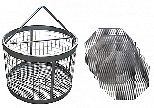 Корзина предназначена для загрузки банок с продуктом в автоклав для последующей стерилизации при производстве консервов. Выполнена из пищевой нержавеющей стали. Комплектуется четырьмя перфорированными полками из нержавеющей стали для банок.