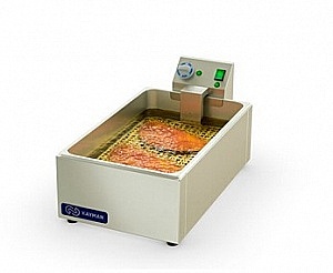 Ванна представляет собой нержавеющую гастроемкость GN-1/1 глубиной 150 мм и имеет маркировку уровня масла (max и min) и кран для слива масла.