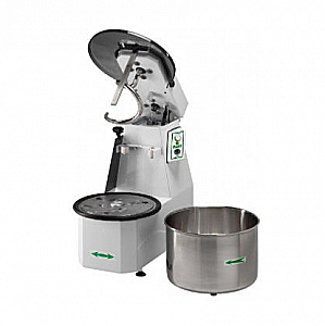 780 x 430 x 730/1240 мм, 380 В, 1,1/1.5 кВт, 2 скорости, скорость вращения 90/180 об/мин, съемная дежа, подъемная голова, производительность до 75 кг/ч, количество теста до 25 кг, объём дежи 32 л.