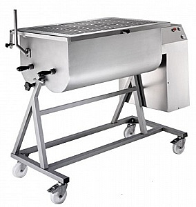 Фаршемеc для пищевой промышленности c двумя лопастями для обработки мяса.Вместимость бункера 180 кг. Установлена на четырех колесах, включая два колеса с тормозом. Корпус, бункер и лопасти изготовлены из высококачественной нержавеющей стали AISI 304. Опрокидывающийся бункер для выгрузки готового фарша.Крышка бункера изготовлена из нержавеющей стали AISI 304 при открывании фиксируется в двух положениях и снабжена микро выключателями. Двигатель непрерывного использования с вентиляцией.