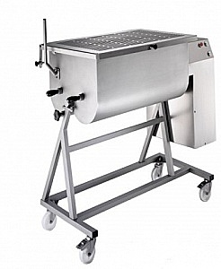 Фаршемешалка C/E MB 50 для пищевой промышленности c двумя лопастями для обработки мяса. Вместимость бункера 50 кг. Опрокидывающийся бункер для выгрузки готового фарша. Легко съёмные лопасти дают возможность тщательно очистить бункер. Легко съёмные лопасти дают возможность тщательно очистить бункер. Двигатель непрерывного использования с вентиляцией.