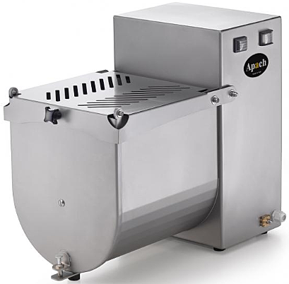 Фаршемешалка APACH AMK10 относится к классу механического и к группе перемешивающего оборудования. Во время перемешивания происходит образование нового продукта в виде однородной смеси из отдельных мелких частиц за счет воздействия перемешивающих рабочих органов. В состав котлетной массы для рубленных изделий из мяса, рыбы или птицы могут входить измельченные мышечная, соединительная и жировые ткани, кожа птицы, белый хлеб, тертый картофель, вода, молоко, яйца, лук, чеснок, зелень и другие ингредиенты.