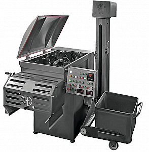Фаршемешалка ДВАК М-400В предназначена для перемешивания под вакуумом мясного фарша с другими компонентами, предусмотренными рецептурой, а также для посола шрота мяса в кусках, массой. Рассчитана на единовременную загрузку 200 литров (~200кг по мясному фаршу, стандартная тележка «Чебурашка» 200л).