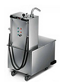 Вместимость резервуара 75 л. Масляный всасывающий насос с всасывающим фильтром из нержавеющей стали. Термостат отключает насос, когда температура масла превышает 90°C. Поворотный кран доставки с безопасным микро-переключателем. Резиновые буферы. 4 поворотных колеса, все оборудованы тормозами.