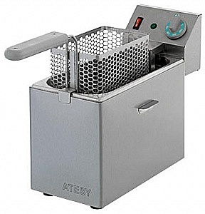 Фритюрница выполнена из нержавеющей стали. Фритюрная ванна представляет собой цельнотянутую нержавеющую гастроемкость GN1/3. Блок управления включает в себя электротерморегулятор и трубчатый электронагреватель (ТЭН), выполненный из пищевой нержавеющей стали. Терморегулятор способен поддерживать температуру фритюра в диапазоне от +50 до +190 °C. Садок имеет удобную пластмассовую ручку, которая предотвращает его выскальзывание из рук во время работы.