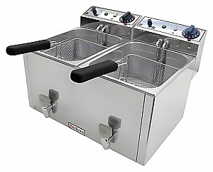 Фритюрница электрическая BECKERS FR 8+8 предназначена для обжаривания продуктов, таких как картофель, мясо, рыба, овощи и фрукты в кляре, в разогретом до определенной температуры растительном или животном масле. Данная модель отличается компактностью и производительностью.