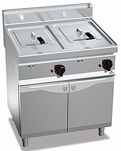 Две штампованные округленные емкости с независимыми панелями управления и приводом и специальными вращающимися ТЭНами из нержавеющего сплава инколой повышенной прочности, позволяющими