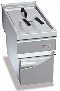 Емкость из нержавеющей стали AISI 304 с широкими закругленными бортами и и широкой холодной зоной под ТЭНами для сбора остатков пищи.
