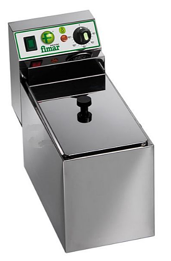 Фритюрница электрическая FIMAR FT 8 предназначена для приготовления широкого спектра блюд в большом объеме масла или жира на предприятиях общественного питания и торговли. Модель оснащена 2 регуляторами температуры, предохранительным термостатом с кнопкой возврата в исходное состояние и съемными верхним блоком и ТЭНами. Корпус, ванна и крышка выполнены из нержавеющей стали, выдвижные корзины - из хромированной проволоки, ручки корзин и крышек - из термоизолирующего пластика.