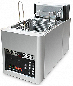 Автоматическое опускание корзин при достижении фритюром запрограммированной температуры и подъем корзин по окончании цикла приготовления, сопровождаемый акустическим сигналом.