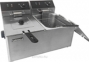 Фритюрница Airhot EF8+8 предназначена для приготовления различных продуктов в большом количестве масла на предприятиях общественного питания и торговли. Модель оснащена холодной зоной и 2 термостатами: рабочим и аварийным. Корпус и ванна выполнены из нержавеющей стали.