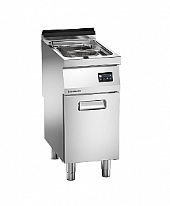 Фритюрница изготовлена из нержавеющей стали AISI 304, толщина верхней части 20/10 мм. Хорошо спрессован, запечатан сверху, обильно покрыт, с большой зоной слива; Каждый колодец поставляется с 1 корзиной и 1 крышкой. Цифровое управление. Электронная плата для управления и отображения температуры 0-190°C, программирования функций плавления и удержания 90°C, звукового сигнала по окончании приготовления. Наклонные ТЭНы в колодце. Предварительная настройка для дистанционного управления пиками мощности.