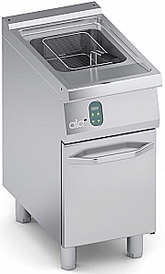 Резервуар из нержавеющей стали с закругленными краями, наклонными к дренажному носику, соединенному с контейнером из нержавеющей стали для сбора масла. Контейнер из нержавеющей стали и фильтр поставляются в качестве стандартного оборудования.