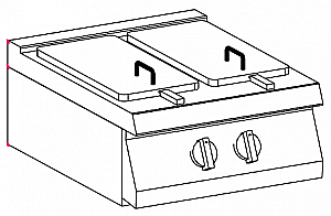 Электрическая фритюрница с двумя ваннами, изготовлена из нержавеющей стали Aisi 304. верхняя часть из нержавеющей стали толщиной 15/10. Нагрев осуществляется с помощью нагревательного элемента погружного типа из нержавеющей стали Aisi 304. Об активации нагрева сигнализирует оранжевый светодиодный индикатор, который загорается на панели управления. Температура масла регулируется механическим термостатом с регулировкой от 100 до 185 °C. Предохранительный термостат с ручным сбросом. Нижняя решетка, корзина и крышка входят в комплект поставки.