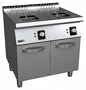 Фритюрница Fagor F-E7215 предназначена для приготовления различных продуктов в разогретом масле (фритюре) на предприятиях общественного питания и торговли. Модель оснащена 2 термостатами, 2 встроенными в столешницу ваннами с крышками и 2 корзинами. Столешница и нагревательные элементы выполнены из нержавеющей стали AISI 304.