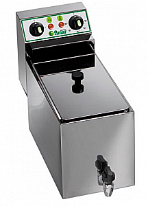 Фритюрница электрическая с краном, одна ванна объемом 10л, вместимость масла 8л. Корпус, ванна и крышка из нержавеющей стали, выдвижные корзины из хромированной