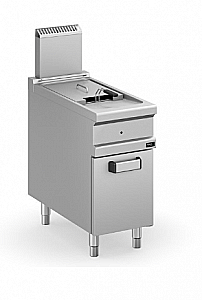 Фритюрница Apach APFG-49P/PL 900-й серии предназначена для приготовления блюд в масле на предприятиях общественного питания и торговли. Модель оснащена электромеханической панелью управления и закрытой подставкой с регулируемыми по высоте ножками. Во фритюрнице предусмотрена холодная зона, что позволяет увеличить время использования масла. Корпус, ванна, рабочая поверхность, панель управления и вытяжная решетка выполнены из нержавеющей стали AISI 304, боковые и задняя панели - из нержавеющей стали AISI 430, корзина - из хромированной стальной проволоки, горелка, фильтр и крышка корзины - из нержавеющей стали.