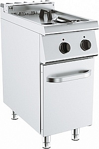 Электрическая фритюрница KUSINA G7F110E используется в составе тепловой линии 700 на предприятиях общественного питания и торговли для приготовления различных видов продуктов в разогретом масле (фритюре). Модель оснащена электромеханической панелью управления, предохранительным термостатом и распашной дверцей. Оборудование изготовлено из нержавеющей стали.