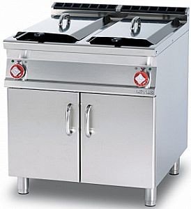 Фритюрница Lotus F2/18-78ET предназначена для приготовления различных блюд в большом количестве масла или жира на предприятиях общественного питания и торговли. Модель оснащена двойным термостатом для управления и защиты от перегрева, 2 фильтрами для ванн, 2 стальными корзинами с термоизолированными ручками и регулируемыми ножками. Наличие борта позволяет предотвратить разбрызгивание воды при приготовлении блюд.