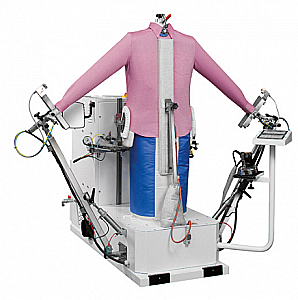 Универсальный пневматический пароманекен для верхней одежды с парогенератором 10 л (12 кВт), с электронным управлением (20 программ), пневматической растяжкой рукавов и прижимных планок. Универсальный пароманекен «Battistella» предназначен для обработки всех видов верхней одежды (пальто, пиджаков, платьев). Существует множество видов таких пароманекенов, в зависимости от функций. Некоторые из них работают полностью автоматически, другие полу-автоматически. Некоторые оборудованы специальными пистолетами для пятновыводки, другие особыми приспособлениями для проглаживания спин и передних полок.