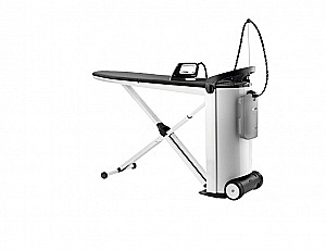 Профессиональная гладильная система Miele PIB100 с функциями отвода и поддува пара поможет выгладить и отпарить не одну высокую стопку белья. Устройство рассчитано на долгий срок службы — не меньше 7500 часов (10 лет). Этот прибор подойдет для салонов красоты, ателье, детских садов, гостиниц и других учреждений. В сложенном состоянии он занимает совсем немного места, так что его можно спокойно хранить в небольших пространствах. Все принадлежности поместятся в корпус, а значит, не потеряются и не запылятся. Система весит 29 кг, но ее легко перекатить с места на место благодаря надежным колесикам, которые не портят пол во время движения.
