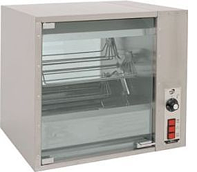 Все элементы гриля выполнены из пищевой нержавеющей стали. Дверь и задняя стенка выполнены из термостойкого стекла. Наличие подсветки в камере позволяет продавцу и покупателю наблюдать за приготовлением кур. Благодаря вращению люлек с тушками кур, происходит равномерная тепловая обработка со всех сторон. Курица гриль прожаривается равномерно и приобретает аппетитную корочку. Уровень шума 80 Дб