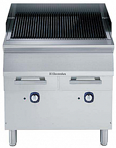 Высокие брызгозащитные бортики из нержавеющей стали расположены по бокам и в задней части гриля. Бортики легко снимаются и пригодны для мытья в п/м машине.