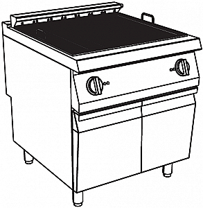 Позволяеь жарить любые продукты без прямого контакта с пламенем. Чугунная плита для приготовления пищи переворачивается и наклоняется для приготовления жирных блюд или используется горизонтально для приготовления рыбы и овощей. Трехсторонняя защита от брызг. Фронтальный жировой канал. Съемный жироуловитель, расположенный под нагревательными элементами, для сбора жира во время приготовления пищи и удержания воды.