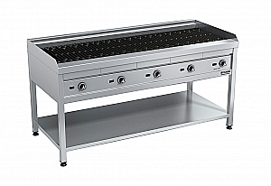 Лавовый гриль Вулкан ЕТК-BST5 «Дуглас» предназначен для жарки различных продуктов на предприятиях общественного питания и торговли. В процессе приготовления блюда получают такой же вкус, аромат и внешний вид, словно их готовили на открытом огне. Вулканическая лава равномерно распределяет жар по продукту; лавовый камень впитывает лишнюю жидкость и исключает появление неприятных запахов в процессе готовки.