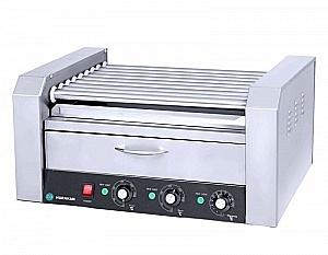 9 роликов, материал корпуса – нержавеющая сталь, материал роликов – нержавеющая сталь, отделение для подогрева булочек
