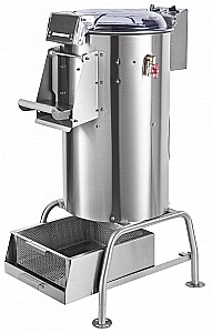 Включение машины производится путем поворота таймера. Выгрузка продукта производится под воздействием центробежной силы. Кожура и вода удаляются через отверстие на дне станины по сливному шлангу и попадают в мезгосборник. Вода удаляется через сливное отверстие на дне поддона, а кожура остается в самом мезгосборнике, не засоряя канализацию. Подставка и мезгосборник картофелеочистительной машины МКК-300-01 также полностью выполнены из полированной нержавеющей стали.