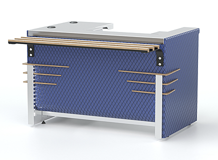 Прилавок кассовый относится к линии раздачи «Case» торговой марки «Refettorio». Прилавок предназначен для установки на него кассового аппарата для расчета с клиентами. Столешница из нержавеющей стали. Прилавок имеет левое исполнение (направление потока слева на право). Для удобства подключения кассовых приборов в нише прилавка вмонтированы две розетки с защитными крышками. На столешнице прилавка имеется две заглушки под кабель-канал. Предусмотрены специальные полки для размещения системного блока персонального компьютера. Имеет светодиодную подсветку в нише фасадной части. Как дополнительная опция прилавок может включать встроенный съемный денежный ящик, запираемый на ключ. В стандартный комплект поставки направляющая и фасады не входят (доп. опция). Ширина прилавка, указанная в ее наименовании, не учитывает ширину фасадов. Полный габаритный размер по ширине указан в чертеже общего вида прилавка.