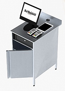 Кассовый модуль BARMADE 700х700х900 мм предназначен для размещения кассового оборудования и эффективной организации рабочего пространства кассира на предприятиях общественного питания и торговли.
