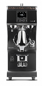 Кофемолка-дозатор с дисплеем TOUCHSCREEN, со съёмным поддоном для отходов, имеет обновленный съемный прозрачный пластиковый загрузочный бункер в верхней части, улучшающий скольжение кофейных зерен в емкость для помола, электронный дозатор с мгновенным помолом, микрометрическую настройку помола, отображение и регулировка на экране дистанции между жерновами.