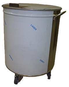 На колесах, объем 50 литров, высота 600 мм, диаметр 380, крышка съемная, колеса D=60, металл AISI 304