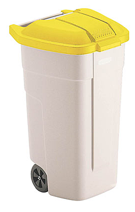 Утилизационный контейнер на колёсах большой вместимости. Дополнительно комплектуется откидными крышками (в комплект не входят). Крышки разного цвета способствуют эффективности раздельного сбора мусора. Утопленные колёса позволяют экономить место. Сеабжён эргономичными ручками.