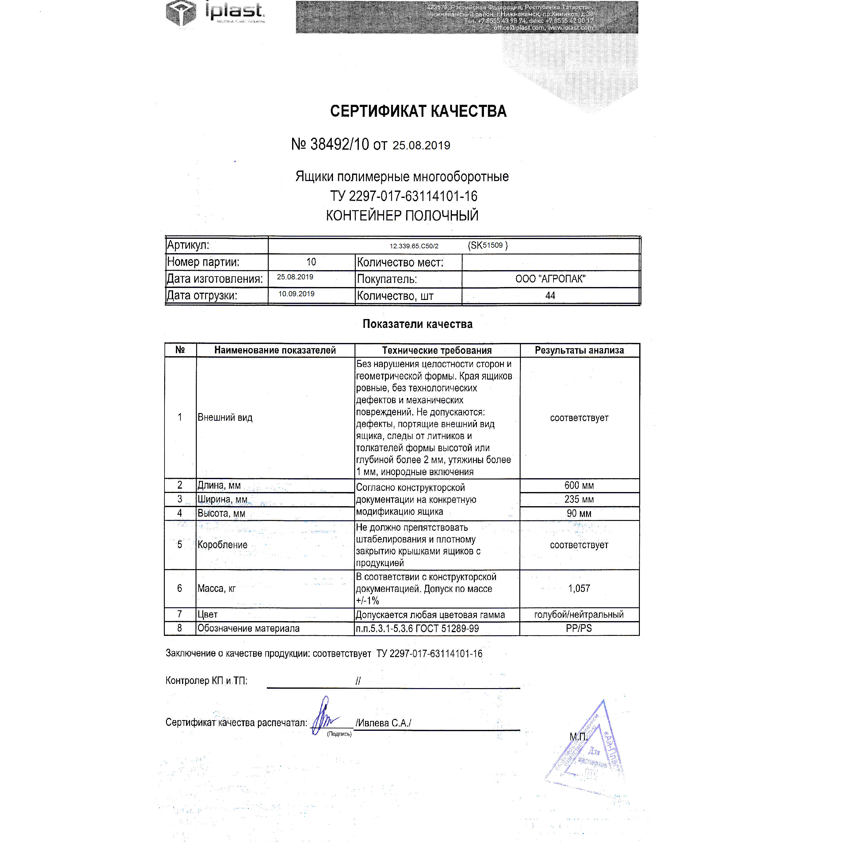 Материал: полипропилен (РР)