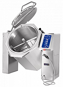 Котел оснащается простым и логичным пультом программного управления, который позволяет устанавливать все параметры готовки. КПЭМ-250-ОМ2 позволяет варить, перемешивать и охлаждать. Смеситель миксера имеет ступенчатую (10 шагов) регулировку скорости вращения от 0 до 140 оборотов в минуту, а также функцию реверса, что позволяет производить перемешивание и взбивание практически всех продуктов.