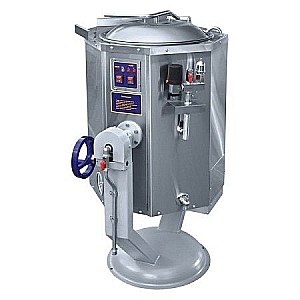 Слив готового продукта происходит путем опрокидывания варочного сосуда с помощью "ручного" привода.