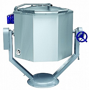 Опрокидываемый котел с ручным приводом КПЭМ-160-ОР для приготовления бульонов, супов, соусов, кремов, каш, а также для кипячения воды. Предназначен для небольших и средних предприятий общественного питания и пищевой промышленности. Количество ТЭН-ов: 6 штук. Номинальный объем: 160 литров. Время разогрева до 95 °C не более 60 минут. Нагрев воды осуществляется способом "пароводяной рубашки". При отсутствии воды в "пароводяной рубашке" срабатывает автоматическое отключение нагрева.