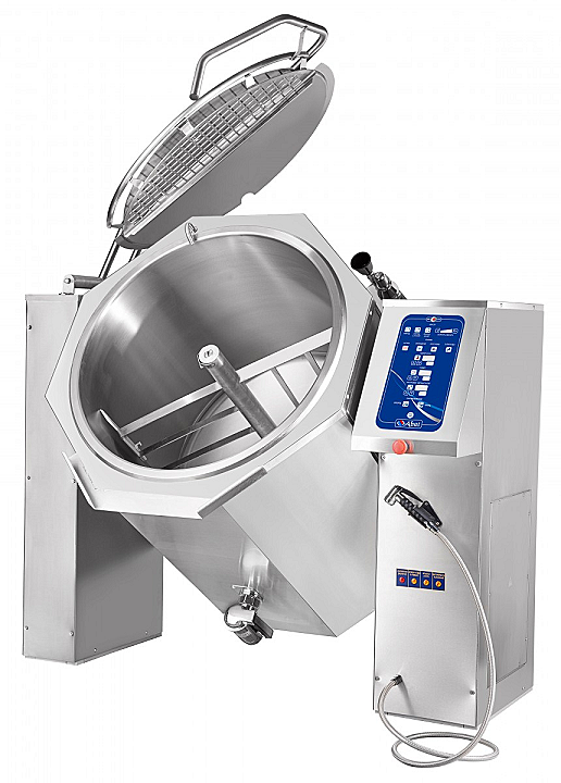 Котел оснащается простым и логичным пультом программного управления, который позволяет устанавливать все параметры готовки. КПЭМ-250-ОМ2 позволяет варить, перемешивать и охлаждать. Смеситель миксера имеет ступенчатую (10 шагов) регулировку скорости вращения от 0 до 120 оборотов в минуту, а также функцию реверса, что позволяет производить перемешивание и взбивание практически всех продуктов.