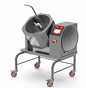 • автоматическая система перемешивания с двумя рычагами, тефлоновыми скребками в комплекте с вертикальным скребковым лезвием для стенок, полностью съемным для облегчения очистки, регулируемым с панели управления в зависимости от обрабатываемого продукта.