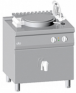 Непрямой нагрев через нагревательные элементы инволюции с циркуляцией пара. Давление в "рубашке" контролируется предохранительным краном. Оснащен аналоговым манометром и предохранительным термостатом.