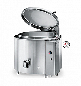 Котёл пищеварочный электрический неопрокидываемый напольный цилиндрический, серии Easypan Medium Line, с косвенным нагревом имеет электромеханическую панель управления, систему контроля уровня воды, кран со смесителем для залива воды, сливной кран, регулируемые по высоте ножки и предназначен для приготовления супов, риса, бульонов, пасты, мяса, рыбы. Внутренний диаметр - 900мм. Высота рабочей ёмкости - 570мм. Внутренний объём: полезный - 300л, полный - 330л. Сливной шаровой кран DN 32 на фронтальной панели изготовлен из нержавеющей стали и предназначен для слива жидкости, гомогенных масс и продуктов с кусочками до 30мм. Нагрев осуществляется армированными ТЭНами из Incoloy-800 (жаропрочный и жаростойкий никелехромовый сплав). Котёл изготовлен из нержавеющей стали.
